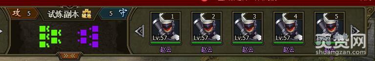 我们试着挑战一下困难难度的赵云,进入战场,战场地形是城池,对手是5个赵云57级。