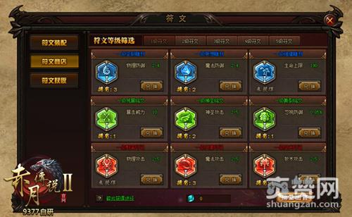 而根据等级,9377《赤月传说2》里的符文又可分为1级符文、2级符文、3级符文、4级符文、5级符文、6级符文。符文的等级越高,带来的属性加成越多。在游戏里,符文主要通过符文商店以及符文抽取,而高级符文的获得同样是通过以上两个途径。