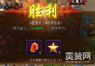 战胜后,获得试炼石*6,星星*9。