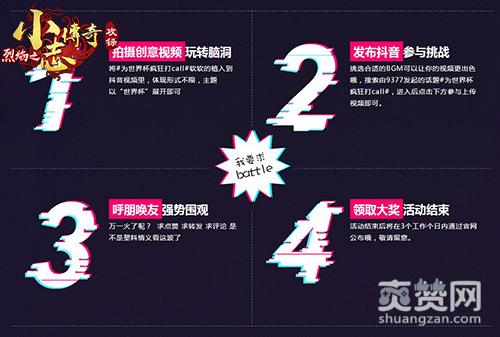 9377小志传奇“为世界杯疯狂打call”抖音创意短视频挑战赛已经于6月7日开启,结束时间为6月30日,想要免费拿世界杯周边的抖友们可不要错过了(关注抖音号“9377游戏”,壕礼走一波)。