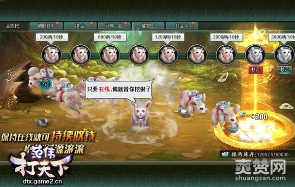 1、金钱鼠:激活9只金钱鼠,银两收益3000/10秒,一天共计2592万;