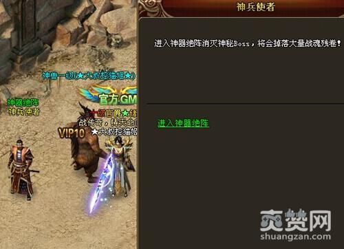 想要挑战的小伙伴,只要等级达到50级以上就可以通过沙漠土城的“神兵使者”进入地图了。在活动开始10分钟后,神器绝阵的顶层将会刷新神秘BOSS,击杀BOSS之后会掉落大量的雪原冰魄,收集雪原冰魄可以兑换逆天神器。