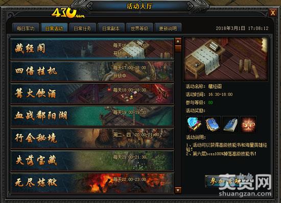 而且当我们任务做完后,可以在激战boss中找boss击杀,获得boss积分、装备和道具等,优先击杀个人boss和阵营boss;到藏经阁挂机,挂满两个小时,可获得大量英雄经验和技能书册;积极参加各个时间段的活动;没时间玩时,可以选择挂机打怪,也可以选择挖矿。