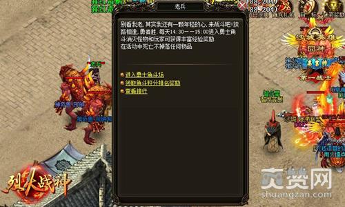 萝卜玩《烈火战神》勇士角斗场在每天的14:30-15:00这段时间开启,而玩家们要想参加证明自已的话首先你要有着一定的实力,等级需要达到30级,并且需要到王城找到NPC老兵,与之对话进入勇士角斗场。