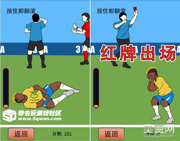 这款游戏是以“内马尔翻滚”为原型的恶搞游戏。在游戏中,玩家可以操控主角“内马尔”翻滚来获取裁判的注意,若是能成功骗过裁判,便能获得分数,但要是搞不好也会使自己陷入被红牌罚出的境地,可以说十分具有挑战性。虽然画面简单,玩法也没什么出奇的,但是这款游戏意外地博得了许多的人气,成功在上架网站中下载量节节高升。