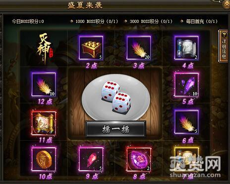 活动期间内,玩家击杀boss可获得boss积分,boss积分数量达指定档次可免费投掷一次骰子,根据骰子点数可领取奖励。每日最多可获得三次。