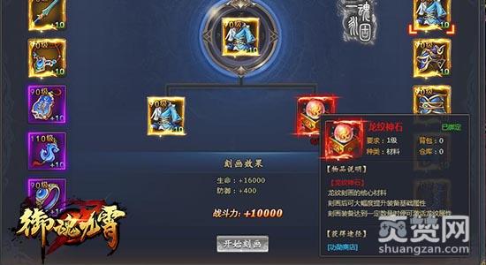 腾讯《御魂九霄》的铸造系统中包含多种提升装备属性的途径,龙纹刻画便是其中之一。龙纹刻画不同与普通的装备升级,而是使用龙纹神石在装备上刻画上“三魂永固”的专属龙纹,巨幅提升装备基础属性。