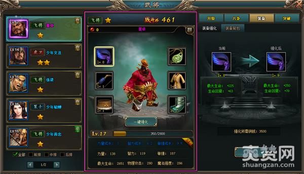 为武将穿戴装备及强化装备也是通常使用的培养武将的手段,不过和其他方式有所不同,这种方式提升的战力值取决于装备的品质和等级,且提升后并不会固定,因此有时武将也会因为装备更换而出现战力降低的情况。如果玩家想要通过这种方法来增加战力,最好使用最高级的装备,这样一来更换装备的几率和次数就会大大降低,能保持战力的稳定。