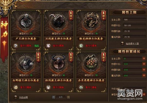 吞噬妖魔之力成为最强战神,玩家可以将野外BOSS击杀获得当前BOSS的魂力,BOSS神力可以为玩家提供大量的属性,但BOSS被吞噬并不是永久的还会被其他玩家抢夺,只有你的实力够强大你才能拥有更多的提升空间,BOSS神力共享占领的BOSS魂魄越多综合属性越强,同时要注意守护你的BOSS!