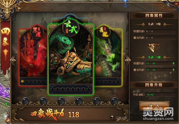四象之力青龙、朱雀、玄武、白虎分别提供了物理攻击、暴击伤害、生命上线、物理防御每一个位面都可以为主角提供超强的属性加成,但是想要升级四象必须每日进行游戏内的活动以及攻城战等精彩玩法,掌握四象之力引神兽击杀异魔!
