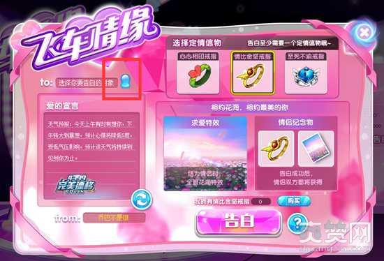 告白需要选择一个定情信物哦,大家可以自由选择购买。