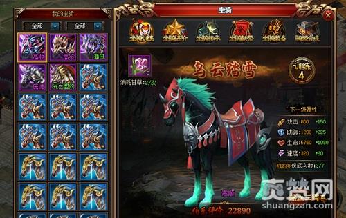 既然说橙色坐骑的属性更给力,那猛将们自然是需要一匹橙色坐骑了。在拥有了橙色坐骑后,该如何将其打造成一匹传说中的神驹呢?首先,我们消耗灵通甘草训练坐骑。训练坐骑可以增加坐骑的四维属性,特别是生命值将被大大提高,而对于一名武将来说,生命值也就越高,也就越难以死去。再加上攻击、防御和速度,这样的坐骑自然是千金难求。