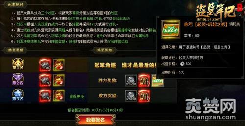 作为首届起灵大赛,此次比赛意义非凡,不仅代表着将要决出第一届起灵王者,更是对玩家自身极大的肯定,三大战区冠军之席虚位以待,获胜者不仅可以悬挂自身肖像永久保存于51《盗墓笔记》起灵赛历届冠军荣誉网页中,更是受万人景仰朝拜,届时将在荣誉榜中开启点赞功能,受到关注的滋味就是这么带感!另外专属绝版称号也是必不可少的,万人莫敌、一骑当千和最强王者的炫酷称号正在静静等待它们的主人,没有获得冠军的小伙伴也不用气馁,只要在胜者方阵营同样可获得专属称号哟!