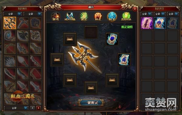 正所谓“工欲善其事,必先利其器”,要想称霸天下成为一代王者,不仅要有王者风范,还要有一身极品装备陪您征战沙场。神兵灵符可为神兵提供包括闪避等稀有属性在内的属性加成,共有白、绿、蓝、紫、橙5种品质,品质越高灵符加成越强。神兵附灵整装待发!更多的挑战,更激烈的竞争,不断的自我超越,在神兵灵符开启的同时,全新跨服军队战来袭,无尽的厮杀即将上演!