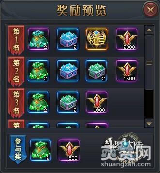 战斗结束时给予积分排名前5的玩家排名奖励,给予所有积分大于500的玩家参与奖励。