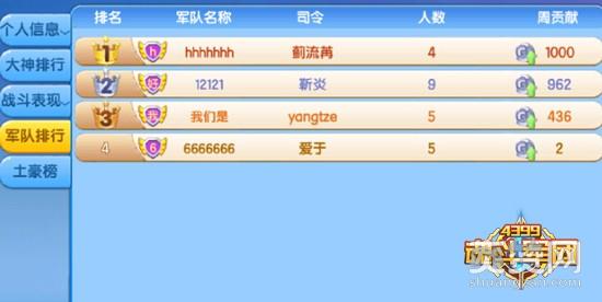 各大军队的角逐在此展开,每周总贡献越高的军队排名越前,排名前10的军队还有银币加成。