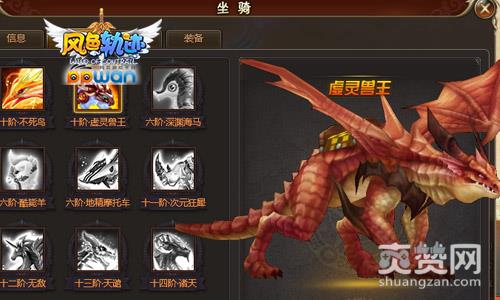 不死鸟即传说中的凤凰,可涅槃重生,是比较适合女性玩家的飞行坐骑,华丽而又炫目!虚灵兽王和起源在ppwan《风色轨迹》中则比较适合男性玩家,这两大飞行坐骑眼神犀利凶狠,外形霸气侧漏,是玩家打架旅行之必备飞行坐骑!