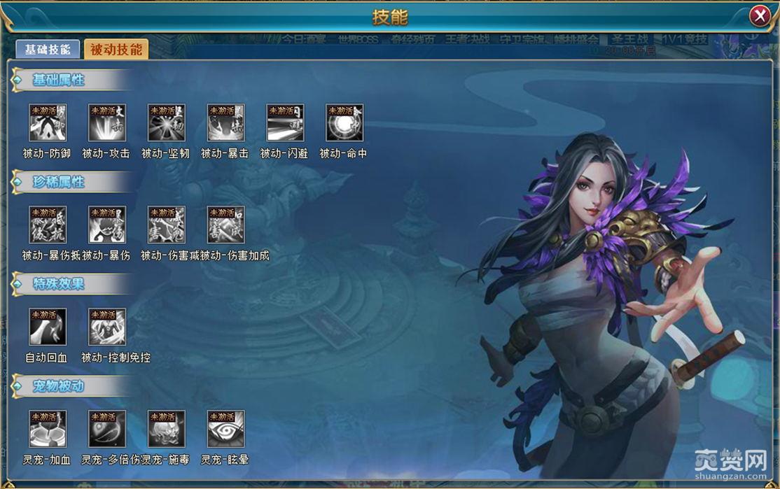 5.被动技能分为:角色被动,灵宠被动,被动技能触发条件为:攻击时触发和被攻击时触发