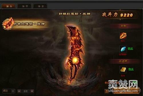 在923yx《战天》中,共有神兵、神甲和神装三种神器。其中,神兵是武器,可以大量的提升人物的攻击,而神甲和神装则是防御类的装备,可以提升防御和生命的血量,今天要说的,是神兵中的轩辕红莲斩!