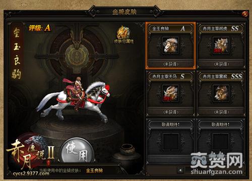 除此之外,更有坐骑皮肤供玩家选择,加大坐骑属性之余还能变得更加狂炫酷霸拽哦!目前,9377《赤月传说2》的坐骑皮肤共有4种,分别是:金玉良驹、赤月主宰天马、赤月主宰战虎、赤月主宰暴熊。每种皮肤不仅形象不同,附加的属性也不尽相同。