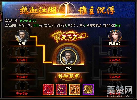 热血传奇谁主沉浮,360uu《天威传说》天下第一玩法正式来袭,200级以上玩家均可加入,超低门槛火热厮杀,加入这场席卷全服的宏大盛会,别出心裁的赛制与玩法,体验这个传奇最悬念迭起的战场,从海选到淘汰,看谁能笑傲沙场,现在就加入战场,看谁在最后加冕为王!在天下第一玩法的海选赛中,所有玩家将自动匿名开始蒙面乱斗,无限制条件随意击杀对手,不增加PK不掠夺战功,在比赛结束后,按照击杀数量决出最终的八强,全民PK元宝奖赏,现在起就加入海选,朝王座进军!