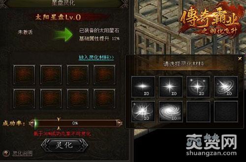 在萝卜玩《传奇霸业》中,玩家可以消耗星光材料对星盘进行灵化。每次灵化最多可放入8个星光材料,放入的星光材料阶数越高,可提供的灵化值和最终灵化成功率就越高。
