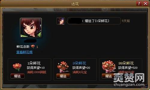 赠送鲜花可以获得520的声望的,需要消耗99元宝的。但是无论玩家使用哪一种方法都只能有一次的赠送鲜花的机会的哦。