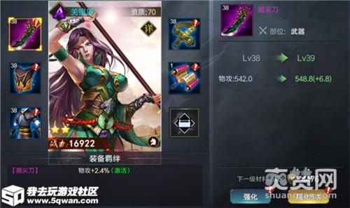 我去玩《汉室雄风》中,装备强化有一定的等级上限,每件装备的等级最高不可超过2倍的主角等级。因此,当装备强化到一定限度后,主公需要提升自身等级来提高装备的等级上限。在一般情况下,强化装备应当与升级武将同步,这样能使武将得到最大的战力提升,可提高战斗获胜的几率。