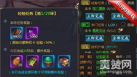 每天20环的经验任务,随着等级提升可获得海量经验,一定要做;相比经验任务会少一些的宗门任务,不过经验也相当可观了,一定要做;以上两个任务如果有条件可以直接选择一键全部完成,省时省力。完成一环只要2元宝,省去每天刷怪时间,可以空出更多时间来抢BOSS。