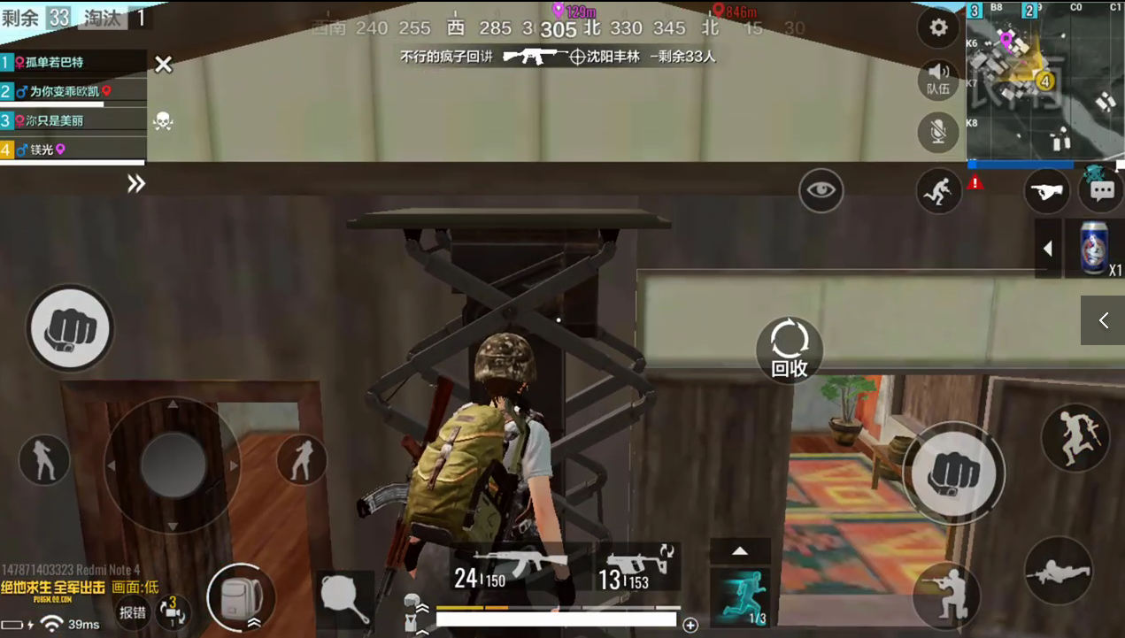 钓鱼执法的对手,常常会将枪口提高到门口三分之二的高度,这样更容易直接打到企图收集的击友。因此,击友采用蹲位射击姿势,采用背靠门的进入方式,缓慢进入房间入口门。击友更低的重心位置,使得敌人很难在第一时间直接命中击友。相反击友反向进入房间的姿势,使得击友更容易对躲避在入口门后的敌人实施袭杀。