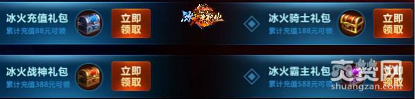 冰火王座活动今天最后一天啦!还没上车的抓紧时间~累计充值588元,即可领取充值、骑士、战神、霸主四大礼包!这波不亏~