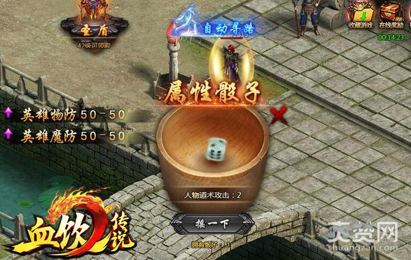 《血饮传说》里有个骰子系统,它将随着玩家在线时间的增加,赠与玩家特殊道具——“属性骰子”。有了这个神奇道具,玩家们就可以动动手指拼人品,获得永久属性提升!不小心还会扔出一个暴击,还能获得扔出点数的双倍属性提升!