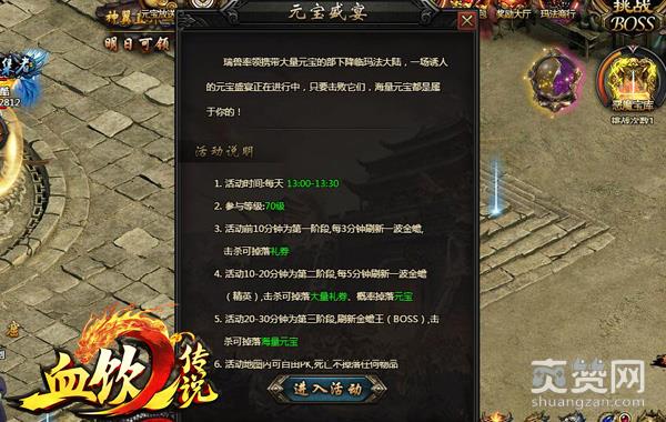 吃饭睡觉打蛤蟆,哥们网《血饮传说》元宝盛宴全揭秘!您缺元宝吗?来元宝盛宴呀,包您爽翻天!
