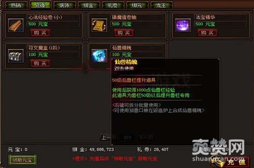 而在萝卜玩《赤月传说2》当中,仙兽栏等级的提升,可以激活更多炫酷坐骑,包括仙兽草泥马以及仙兽狂犀牛等等。仙兽精魄,可以通过以下两大途径来获得:一为商城直接购买,单价100元宝;二则是消耗驯兽口粮进行合成,6个驯兽口粮和250000绑定金币,会有一定几率合成1个仙兽精魄。
