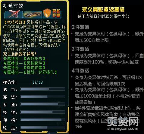 武器特点:英雄武器、冥蛇套件、冥蛇护罩、近战攻击