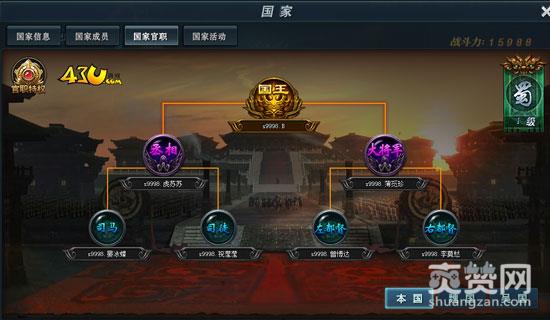 另外就是加入国家,每个玩家都可以选择一个自己的国家,国家不但可以将志同道合的玩家结合在一起为天下而战,还有专属的国家宝箱,国家技能,对于为国效力的忠诚战将,国家会给予丰厚的奖励。