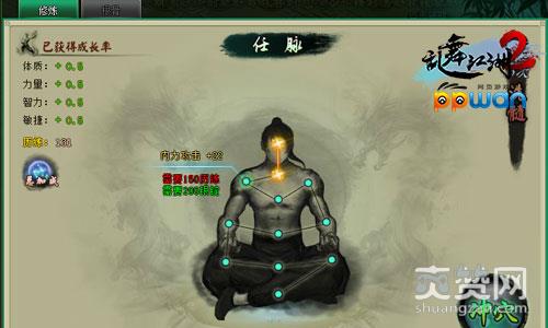 在ppwan《乱舞江湖2》易经主旨在于开启奇经八脉:任脉、督脉、冲脉、带脉、阴跷脉、阳跷脉、阴维脉、阳维脉。玩家每打通一处经脉不仅仅给玩家侠客带来武力攻击、武力防御、内力攻击、内力防御、生命值、速度、命中、闪避、暴击、抗暴、格挡、破击等等属性加成,而且还会给玩家角色带去力量、智力、敏捷、体质等四大成长率哦!