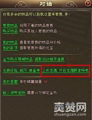 另外,消耗2200龙魂也可任意选择重生戒指,护身戒指和麻痹戒指哦!龙魂可通过屠龙、击杀怪物、用战魂、法魂、道魂兑换等方式获得。923yx致力于做一个敢作敢为,敢作敢当的游戏运营平台,创新与执行力、真诚与担当,这是我们对玩家的承诺。