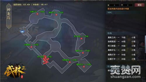在《武林三》里,玩家们也将踏上这片岛屿开启自己的江湖历练。当角色达到71级后,点击【经验挑战】进入【侠客岛】。侠客岛共有5个岛,初始玩家只能挑战65——100级的【神龙岛】,达到等级要求后才能进入下一座岛。岛上每层都有安全区和非安全区,安全区内禁止PK,玩家进入后可选择对应等级的怪物进行挂机。屏幕右侧显示推荐击杀的敌人,如果想要挑战其他人,可以打开地图查看相应位置,再依图示寻找即可。