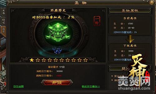 萝卜玩《灭神》游戏符文看起来比天书和印记系统内容更丰富、更厉害的是其附加的对BOSS伤害加成2%。 符文分为十二阶,每一阶有10星,消耗符文碎片可升星级,升至10星后可进阶获得生命、攻击属性。随着符文品阶的提升,对BOSS的伤害加成也会逐渐增加,在面对BOSS之时你也会毫不畏惧,毕竟有额外属性加身,BOSS也难逃你的法掌啦!