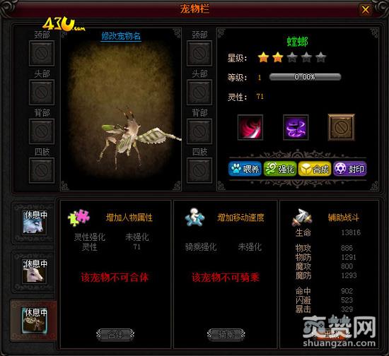 43u《猎魔》中宠物共分为3种类型,战斗、骑乘和合体。战斗即出战后辅助玩家战斗,分担伤害;骑乘作为玩家的坐骑,提高玩家移动速度;合体则可以为玩家提供额外的属性加成。部分高级宠物同时拥有骑乘和合体的能力。如充值赠送的奇美拉、不死鸟、炎龙等。