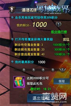 潘多拉魔宫的玩法也不是一味地PK,它还是有比分机制的,37《黑域战界》的玩家需要通过打开魔方、击败不同势力、击败积分超过3000的玩家,才可以获得积分,积分达到指定目标即可领取对应奖励,积分越高,所对应的奖励就会越好哦!