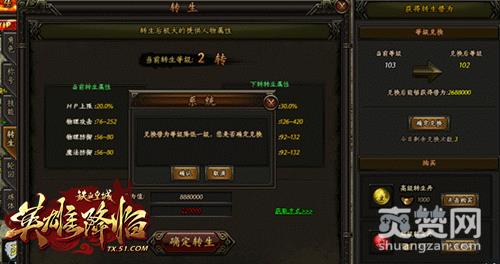 转生需要传说中的修为值,看似简答的修为值竟然成为51《铁血皇城》江湖上不易获取的重要物品之一。如果你是RMB玩家恭喜你,充值和一些元宝活动中可以拥有获得修为值的许多机会;如果你不是那就很抱歉,你只能通过降低等级来兑换修为。等级降低兑换修为值也不是无条件限制的,一天只能兑换三次。