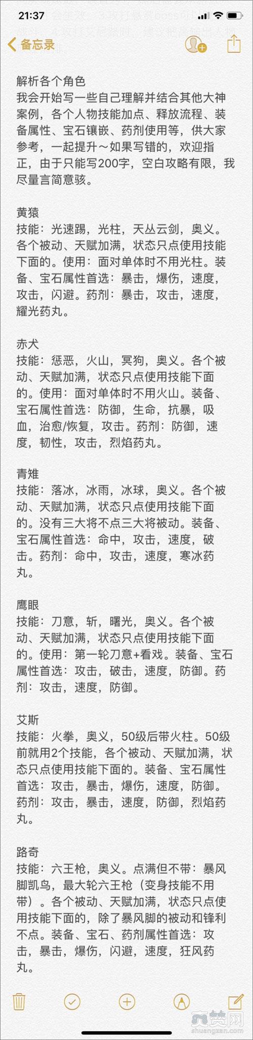 关于攻略最后想说的一点就是,好记性不如烂笔头,也有可能是我真的挺闲的,记性也不好,我会做游戏笔记,把自己上阵英雄的装备、宝石、训练情况等整理一份表格,随时查看自己需求,随时更新。