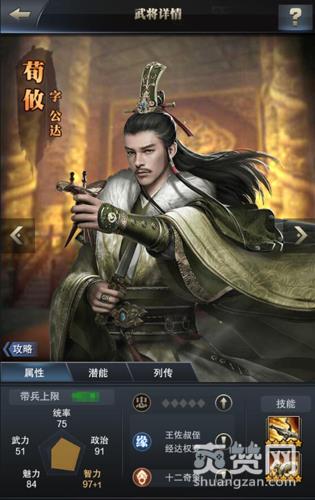 首先从五维属性上看,荀攸作为一名智力将,其智力值达到了97,仅次于郭嘉和诸葛亮,在智力将中名列前茅。从缘分搭配上看,荀攸不仅可以和荀彧组成“王佐叔侄”的缘分组合,提升全军攻击力2.5%;还可以和贾诩组成“经达权变”的缘分组合,提升全军防御力2.5%。这两种缘分组合对于主公们来说都是提升军团实力的极大助力。