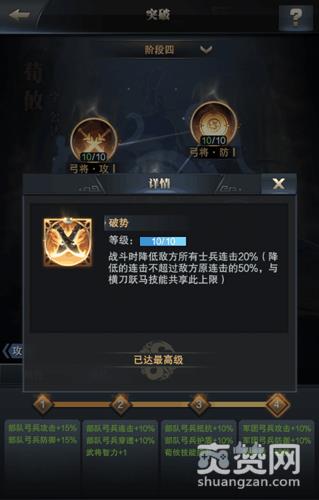 而这位强势的武将在突破后更是获得了巨大的成长。首先他的谋主技能将加强到50%,全军团的攻防加成得到进一步的提高。同时“飞弩”技能也会增强到25%的弓兵加成。当他突破到第四阶段将激活突破技能“破势”,降低敌方军团士兵的20%的连击。正如各位主公所知,张星彩可以增加自己军团的连击,而荀攸则是降低敌方军团的连击,两者一样强力。但需要提醒各位主公的是,荀攸的“破势”技能和关平的突破技能共享上限,大家在集结的时候需要注意这一情况。