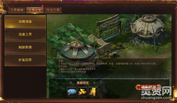 于此同时,在跨服区域中,还有四大任务玩法等待你来体验,在战略储备中收集辎重支援前线;在巡查三界内检查各路战情;在刺探军情里深入前线探查敌人军事部署;在护美回界里护送美人前往宴会。四种玩法不一的任务,都需要路经战况激烈的跨服区域,在这里与其他两服的玩家竞技比拼。最后,在三界内全新守卫三界玩法来袭,在禁地之内,每天都将有诸多BOSS进攻三界神石,击杀怪物获取能量,再使用能量释放守卫技能,多人组队更有免伤加成,守卫圣地获取极品骑装,加入360uu《乱斗乾坤》,在三界之内开启你最新的征途!