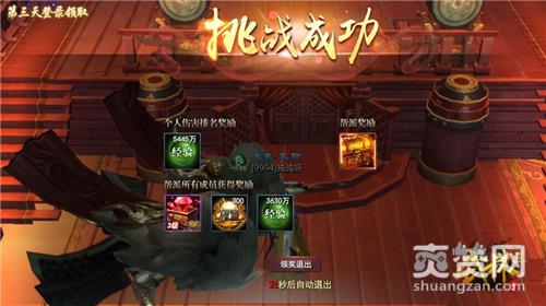 进入挑战地图稍作休息后就要直击BOSS了。和其他玩法比较相似,首先玩家可以携带侠客入场,可以分散BOSS的注意力;其次,有场景涉限,玩家需要在规定时间内击败BOSS,右侧标有伤害排行榜,伤害越高的人有一定几率获得优质奖励。道理大家都懂,只要踏踏实实击败BOSS就大功告成啦!