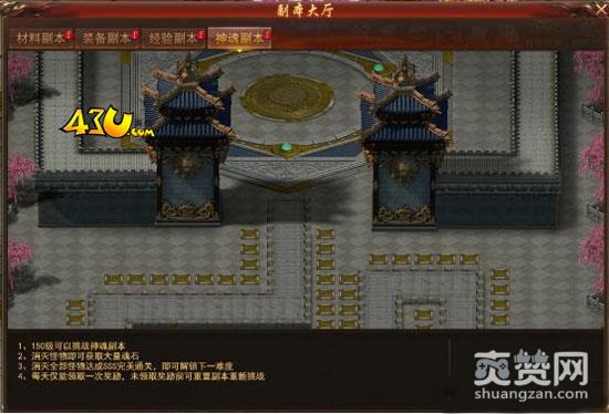 43u《乱斗乾坤》的副本主要是材料副本、装备副本、经验副本,首先是材料副本,顾名思义咯,这个副本主要产出各个系统升级消耗的材料,难度越高奖励越多,每天每个副本有挑战次数限制!
