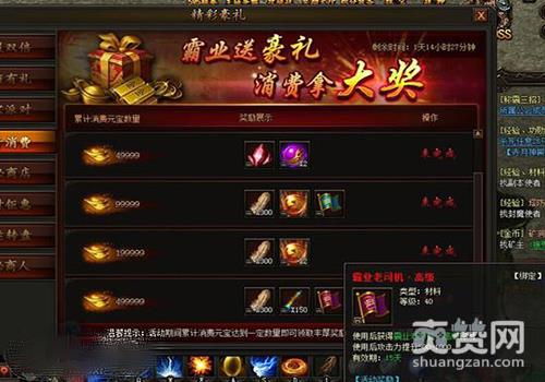 最近的精彩豪礼活动,其中累计消费,消费19999元宝就有初级老司机称号攻击100-200;99999元宝送中级的200-600;最高消费499999元宝获得高级霸业老司机称号,属性更是500-1000,相当之高。